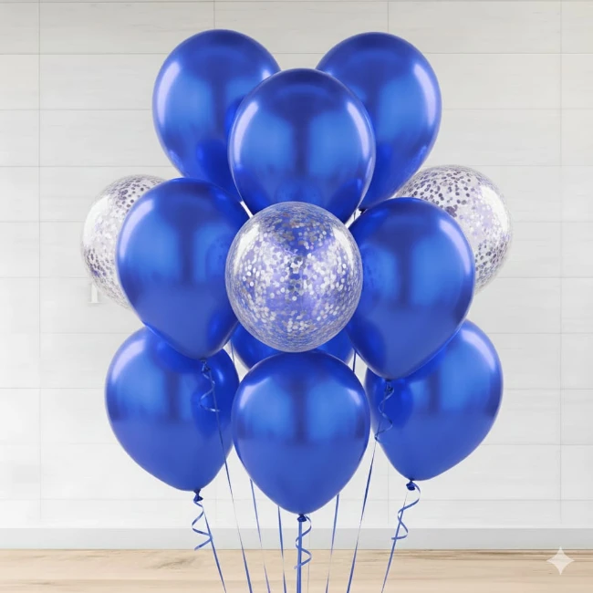 Celebrate any special moment with the Blue & Silver Balloon Bunch from Gift Shop UAE in Al Ain. This vibrant arrangement features high-quality blue and silver balloons that add elegance and joy to birthdays, anniversaries, or any special occasion. Perfect for decorating homes, offices, or event spaces, these balloons instantly uplift the atmosphere and create memorable celebrations. Each balloon is carefully selected to ensure long-lasting shine and durability. Order now to surprise your loved ones with a stunning balloon bunch that reflects your thoughtful gesture. With our easy online ordering and same-day delivery in Al Ain, making celebrations extraordinary has never been simpler. Brighten every special day with this dazzling Blue & Silver Balloon Bunch.Get the latest product updates on our Instagram